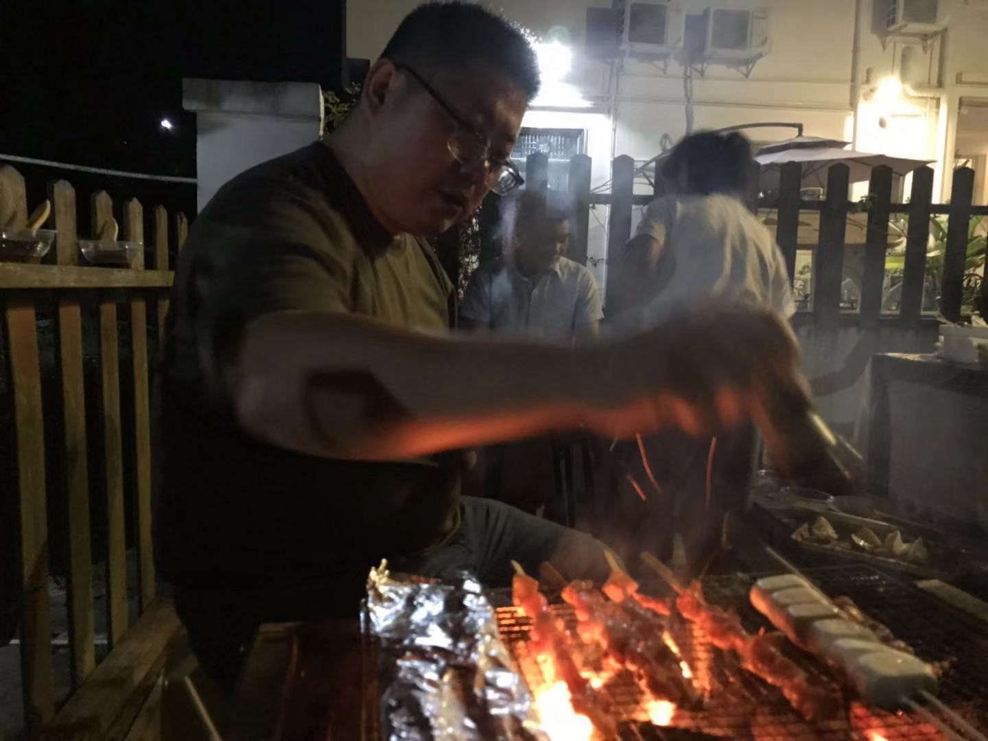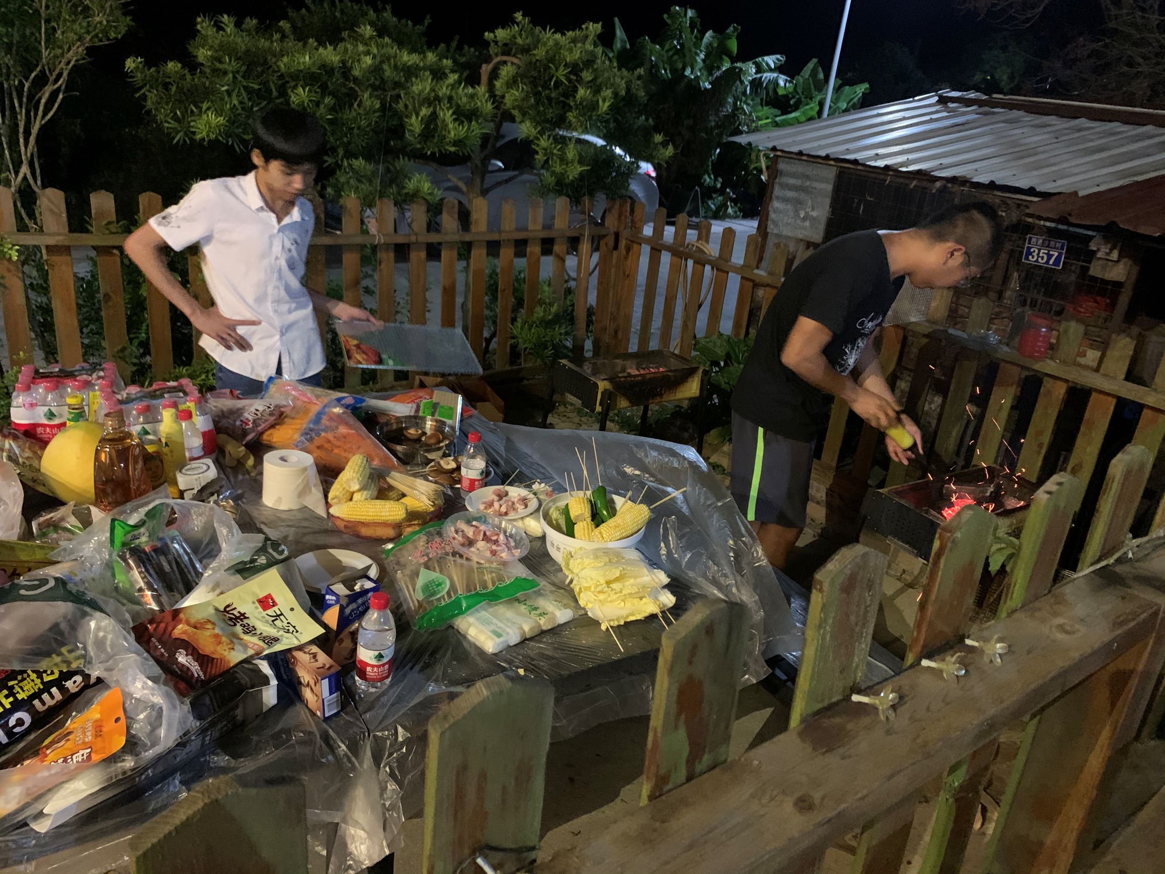 回到民宿時(shí),已經(jīng)接近七點(diǎn)了,我們就開(kāi)始著(zhù)手燒烤的事情